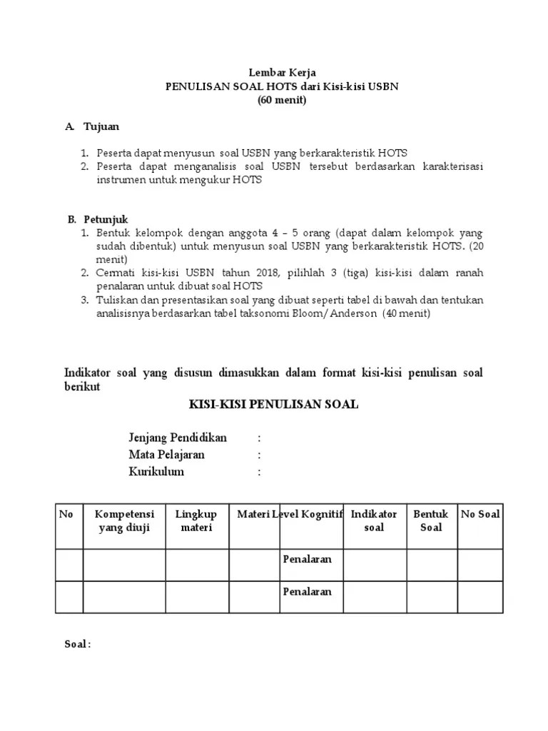 Format Kisi-Kisi Soal Usbn 2018 / Download Kisi Kisi Soal Usbn Sd Mi Tahun 2019 Sekolahdasar Net : Badan standar nasional pendidikan (bsnp) .